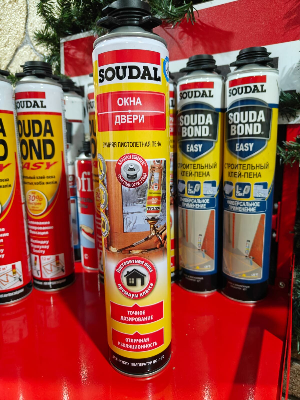 Отзывы на Пена монтажная Soudal пистолетная Соудал Окна и двери 750 мл Зимняя