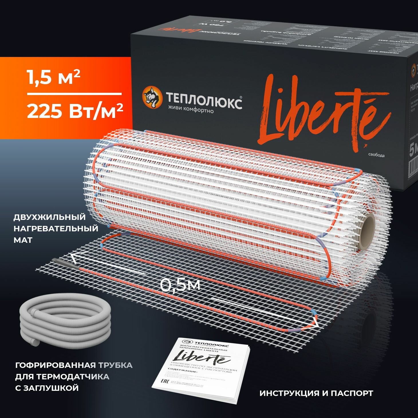 Нагревательный мат Теплолюкс "Liberte", для комфортного отопления, 2,5 м², гарантия 25 лет