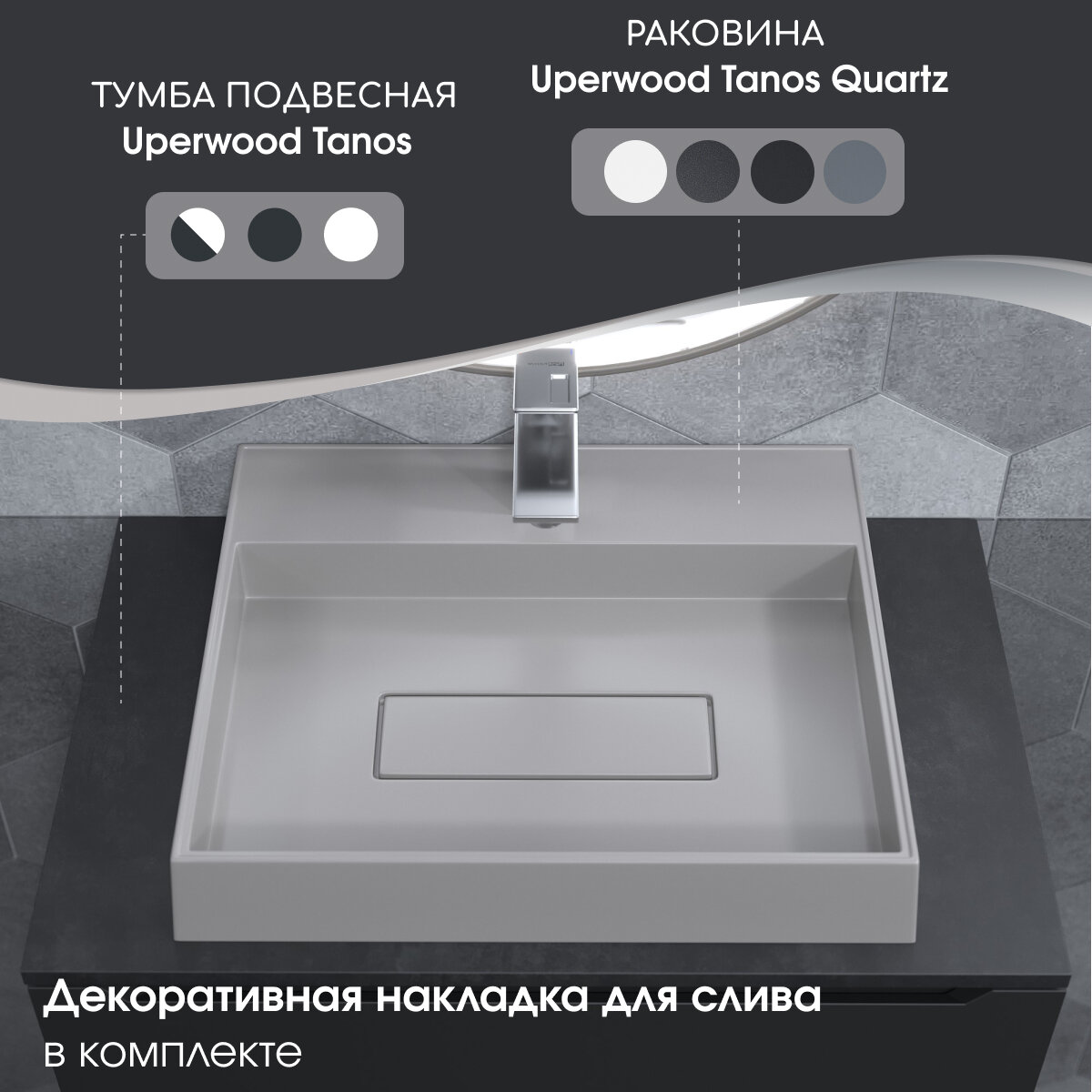 Раковина для ванной накладная кварцевая Uperwood Tanos Quartz 50 см, прямоугольная, с декоративной накладкой, жасмин информация: