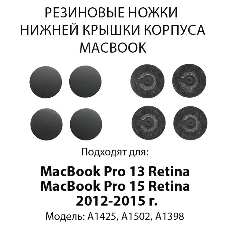 Ножки для MacBook Pro 13 2012, 2015 Retina Модель: A1425, A1502 / для MacBook Pro 15 2015 Retina Модель: A1398, Цвет: Черный