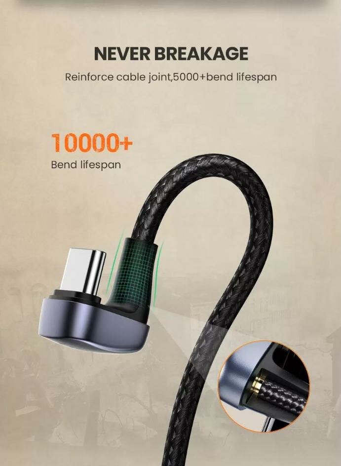 Отзывы на Кабель UGREEN US311 Длина 2 м. USB-A to Angled USB-C Черный (RU)