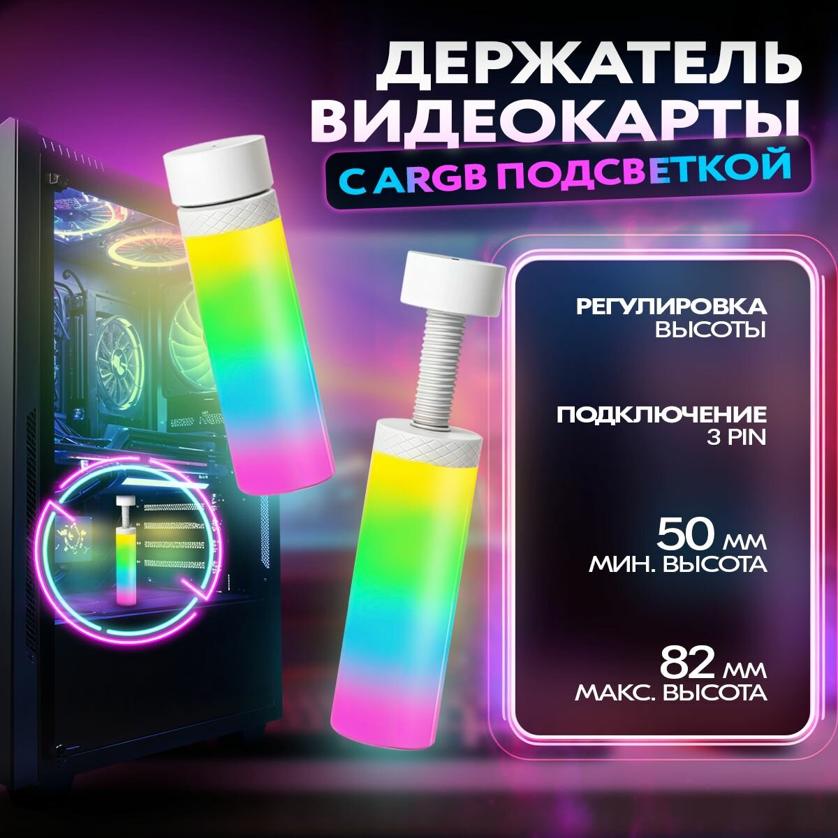 Отзывы на Вертикальный держатель для видеокарты с ARGB подсветкой, с прорезиненным основанием 8см, 360COOL