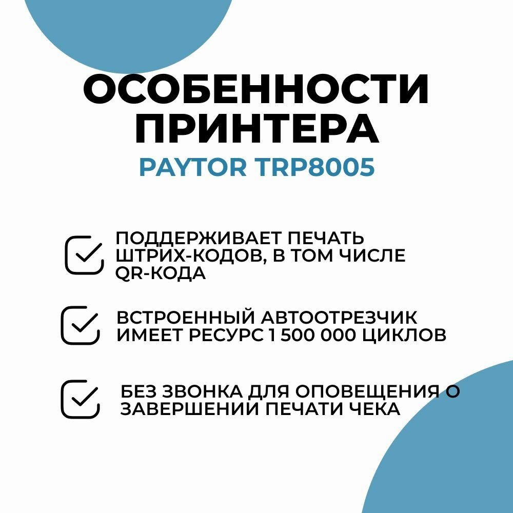 Принтер чеков PayTor TRP8005 без звонка (термопечать, USB, LAN, RS-232, 203 dpi, черный) для чеков информация: