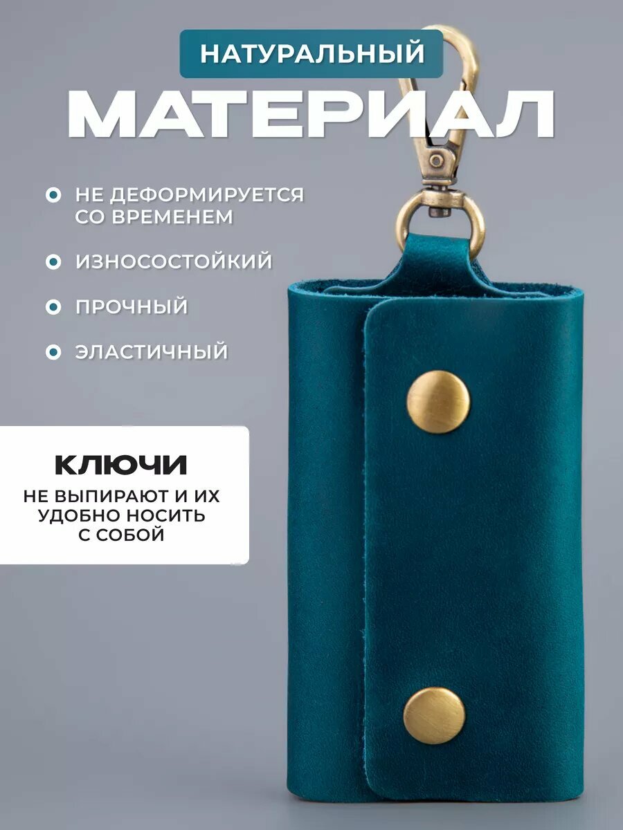Ключница из натуральной кожи, 2 отделения на молнии, карабин, синий 1 350 ₽