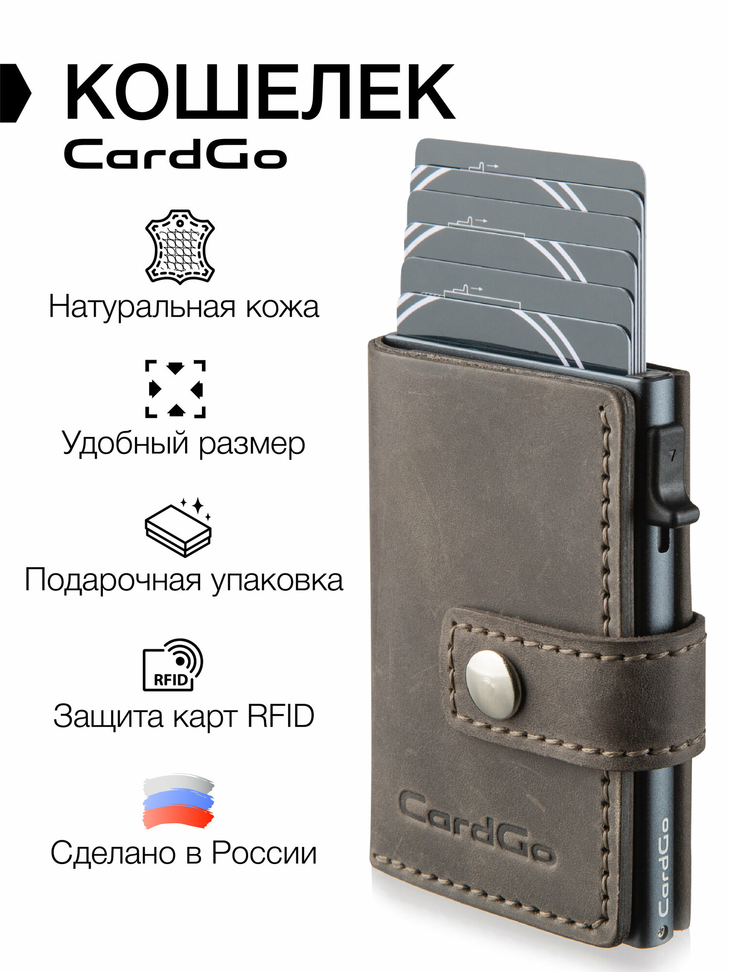 Мини-кошелек CardGo из натуральной кожи со встроенным алюминиевым корпусом (RFID / NFC защита) серый 3 400 ₽