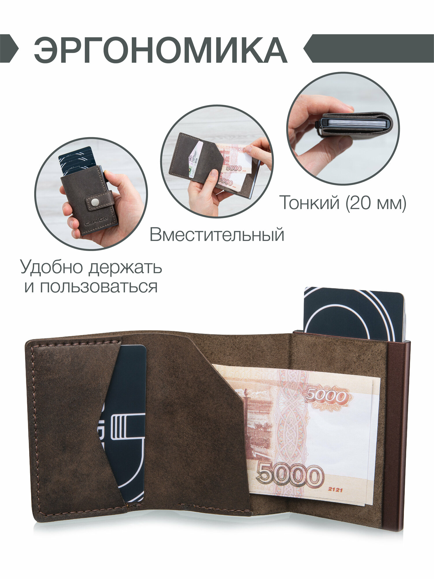 Мини-кошелек CardGo из натуральной кожи со встроенным алюминиевым корпусом (RFID / NFC защита) темно-коричневый 3 400 ₽