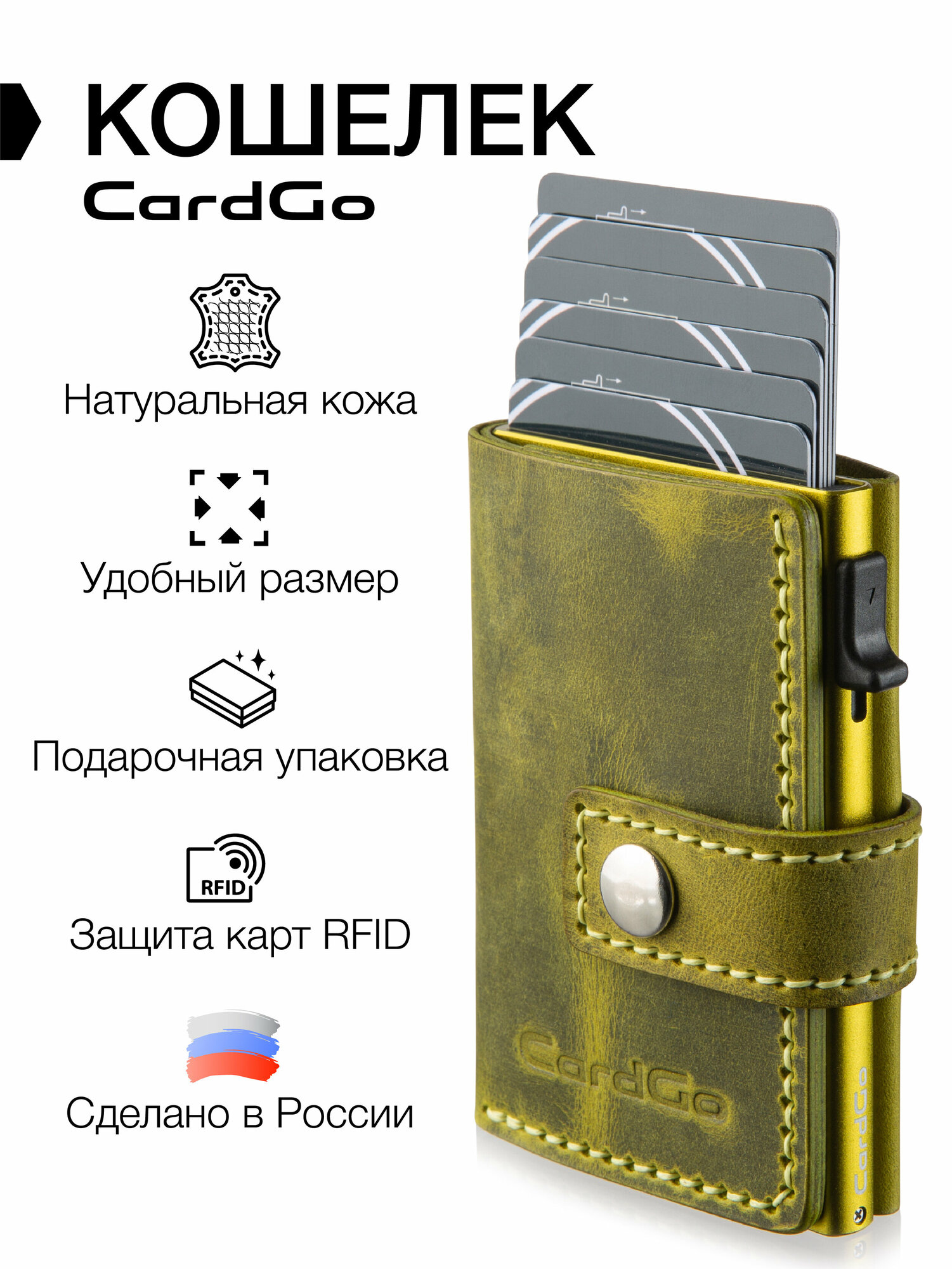 Мини-кошелек CardGo из натуральной кожи со встроенным алюминиевым корпусом (RFID / NFC защита) желто-зеленый 3 400 ₽