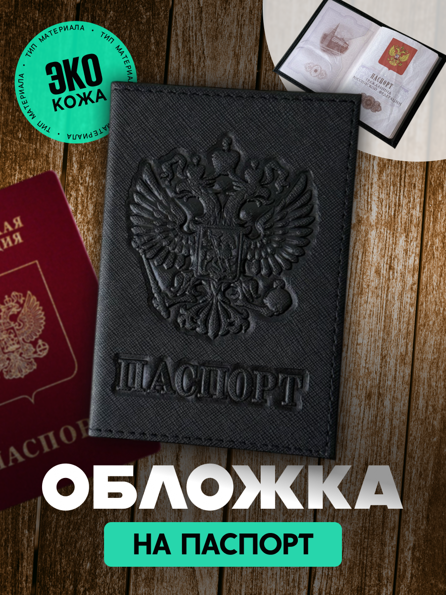 Обложка на паспорт из натуральной кожи с гербом / кожаная / мужская / женская / для документов
