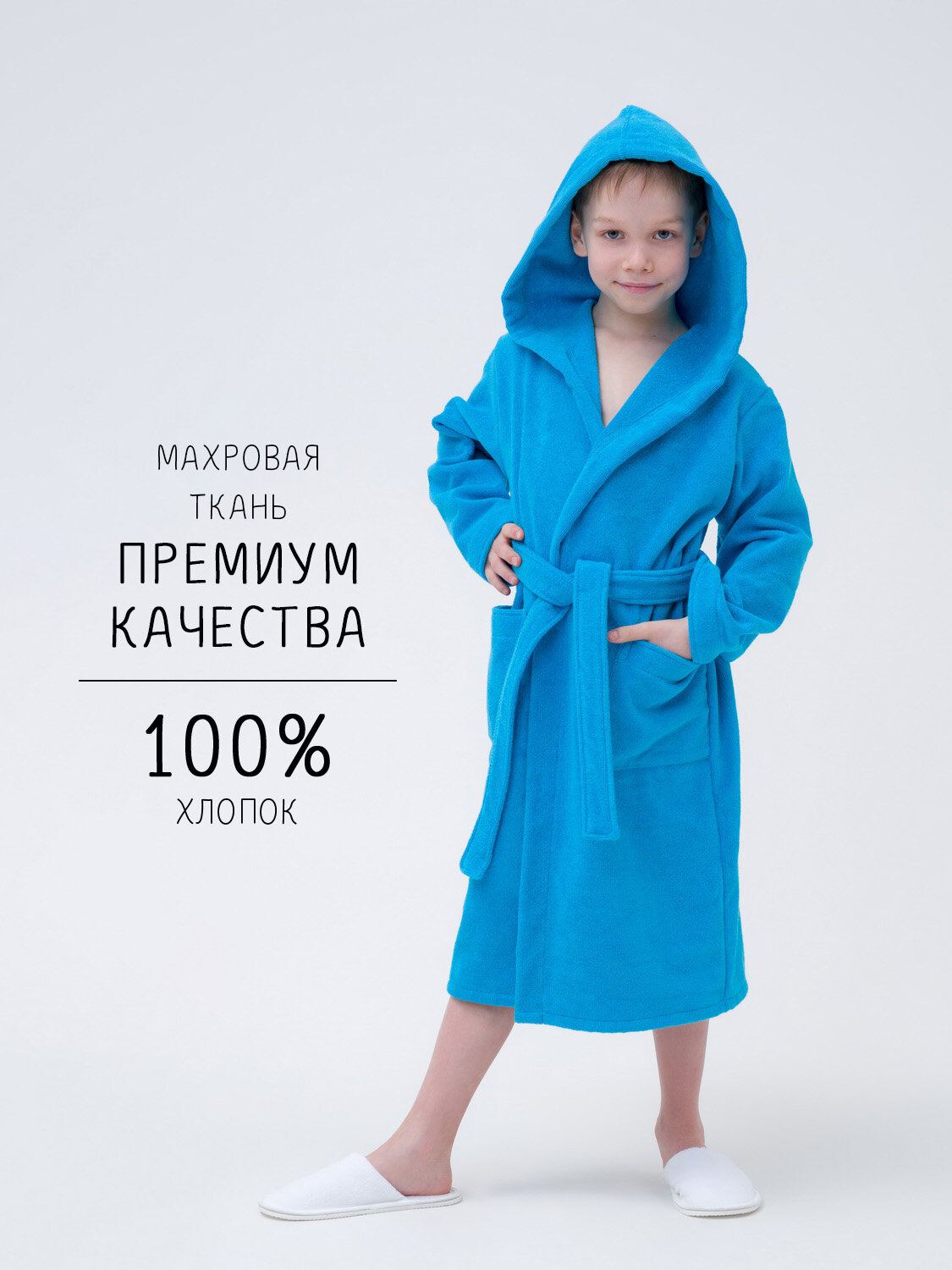 Детский банный махровый халат бирюзовый с капюшоном Росхалат для девочек для мальчиков 134-146