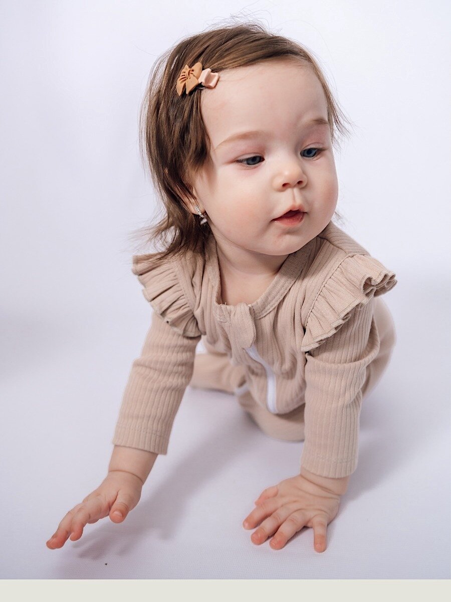 Комбинезон нательный для новорожденных в рубчик Bebo слип лапша с крылышками на молнии с закрытыми ручками и ножками, Экрю, р-р 56 1 490 ₽
