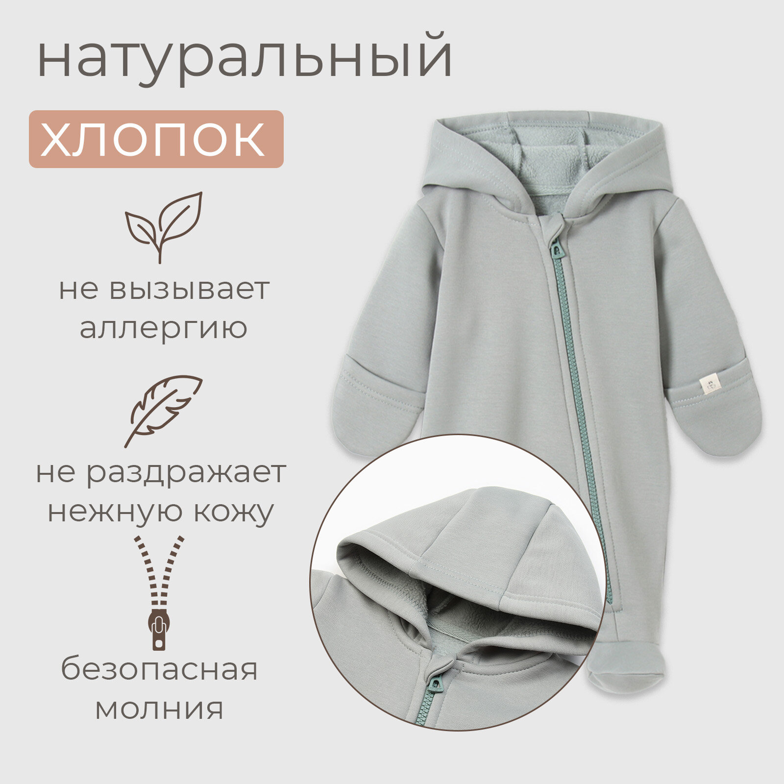 Комбинезон , закрытая стопа, размер 50 (0 мес), хаки