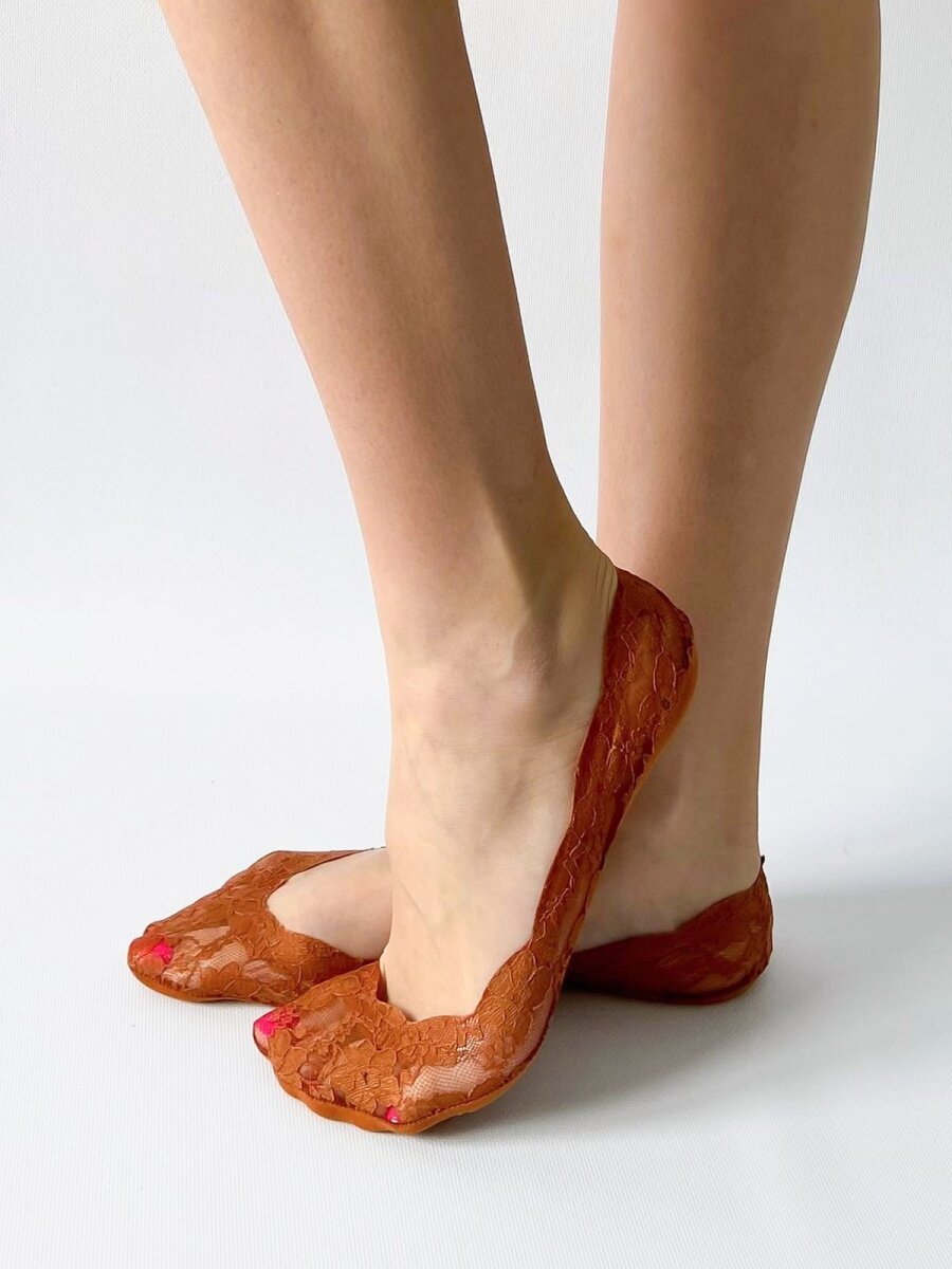 Кружевные подследники(следки) с цветочным узором, силиконовыми антискользящими вставками по резинке 420 ₽