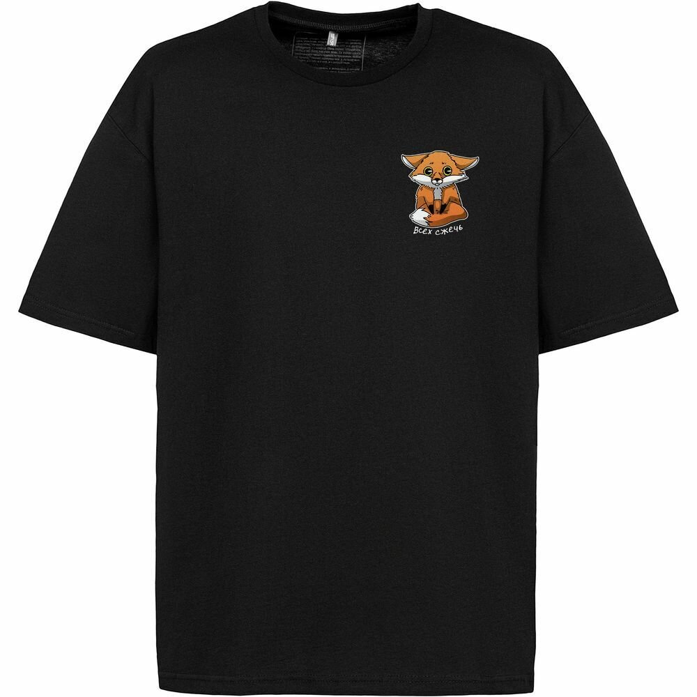 Футболка мужская женская унисекс с принтом хлопковая хлопок оверсайз Cute Fire Всех сжечь Лиса черная, размер XL/XXL 1 494 ₽
