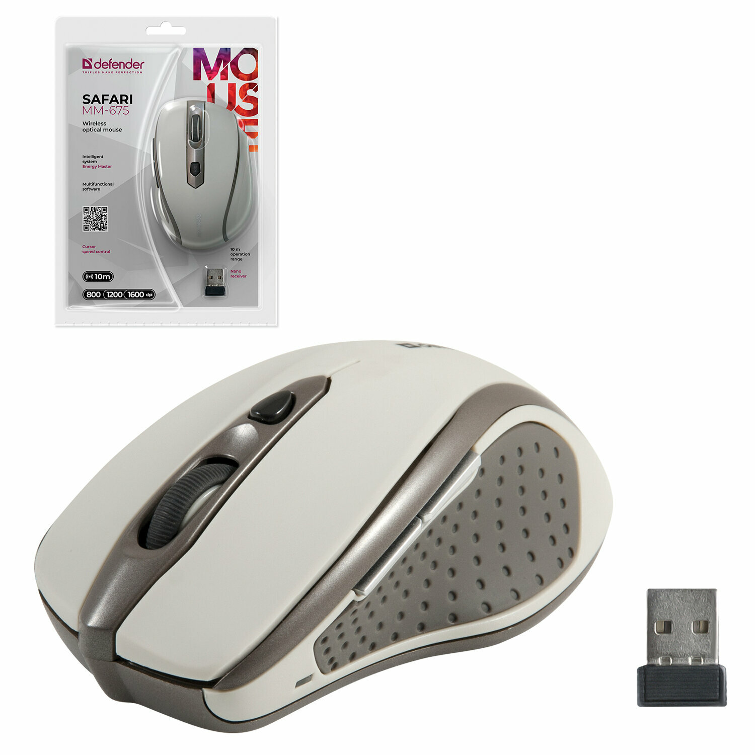 10 цен на Мышь беспроводная DEFENDER Safari MM-675, 5 кнопок + 1 колесо-кнопка, оптическая, бежевая, 52677