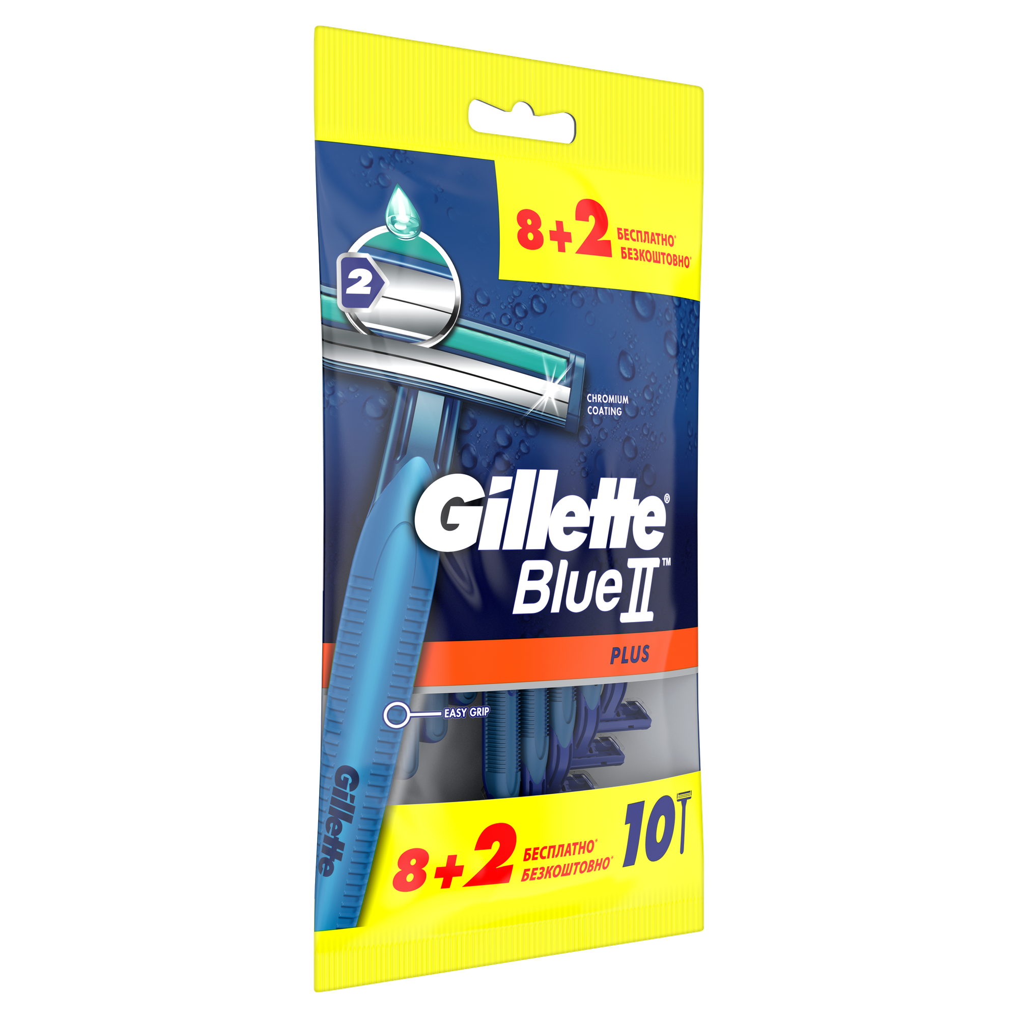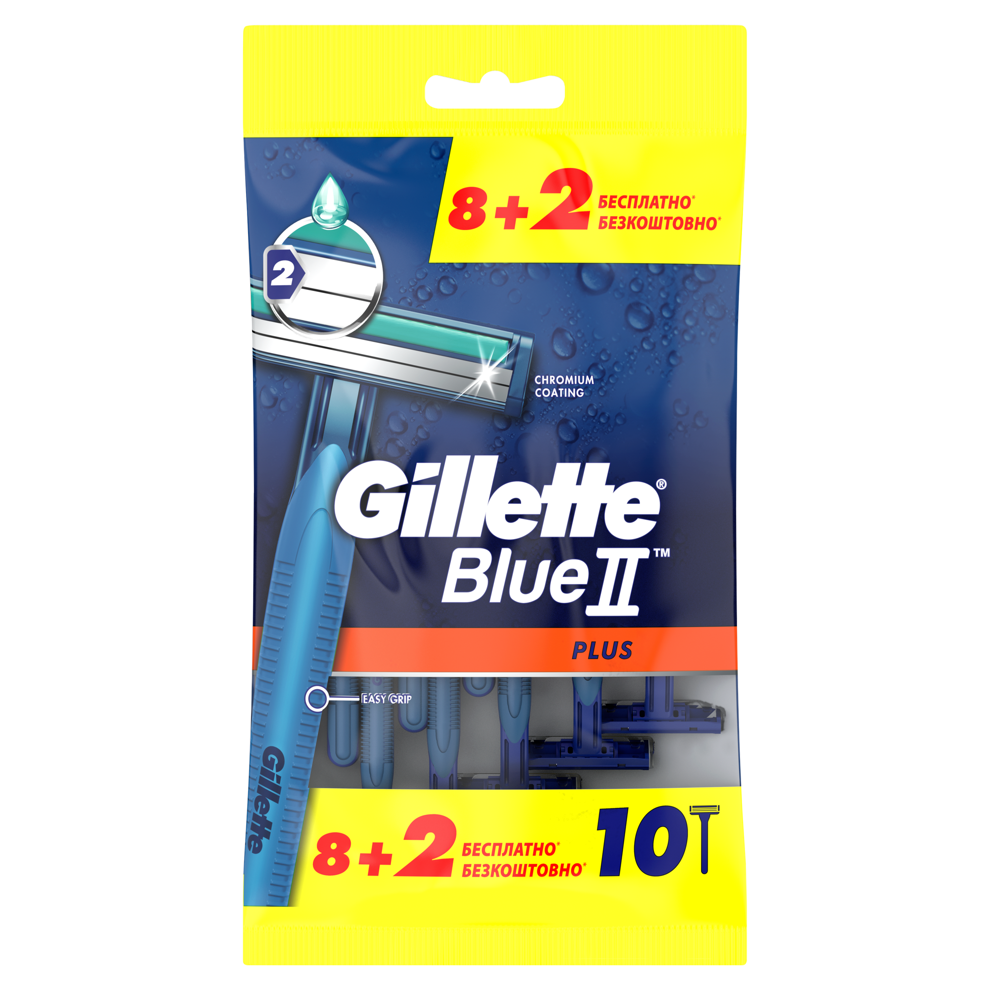 Gillette Одноразовые Мужские Бритвы Blue2 Plus, с 2 лезвиями, 10, фиксированная головка информация: