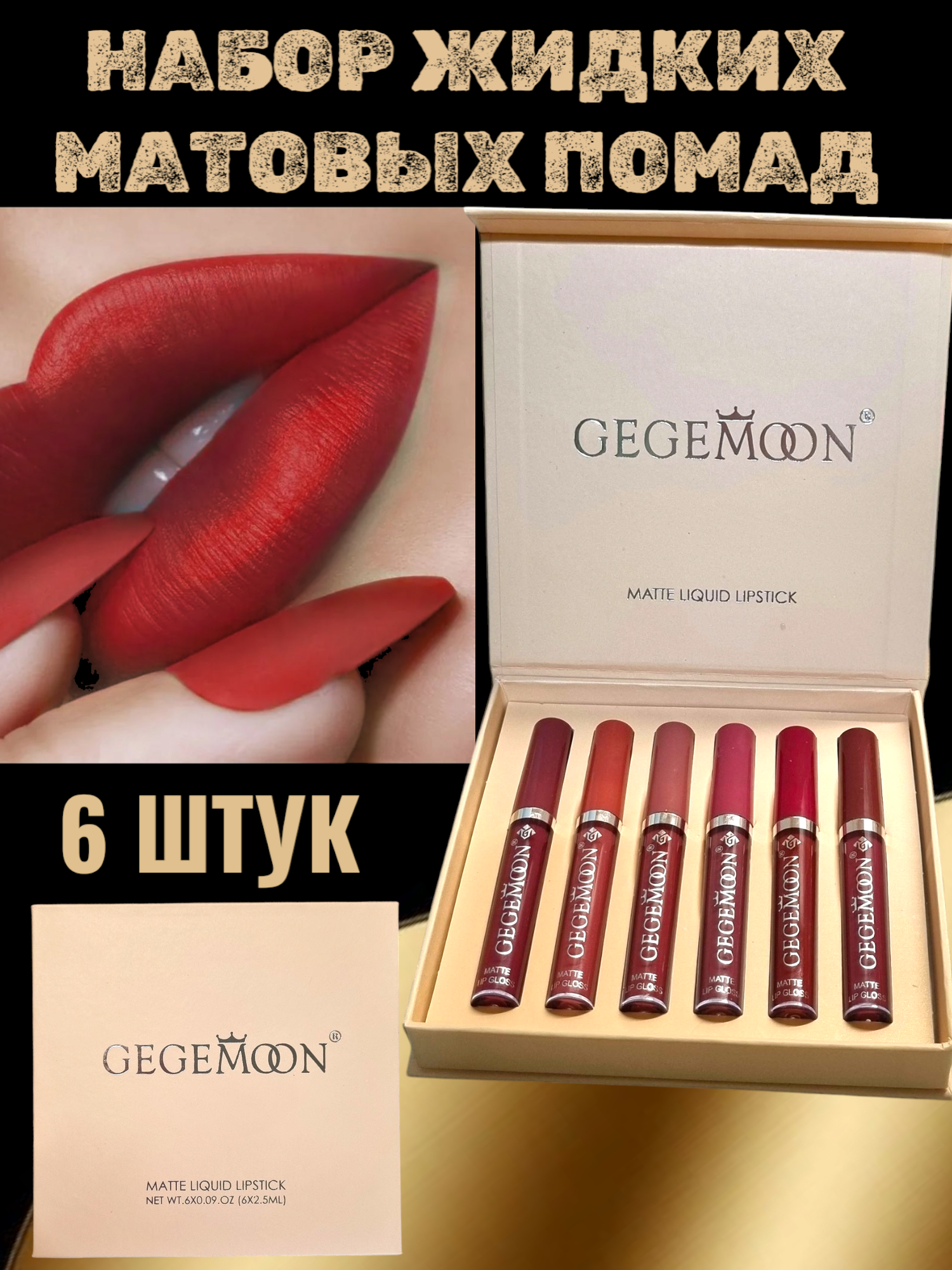 Набор помад Gegemoon Красивые губы, матовые, жидкие, 6 оттенков, 10 мл информация: