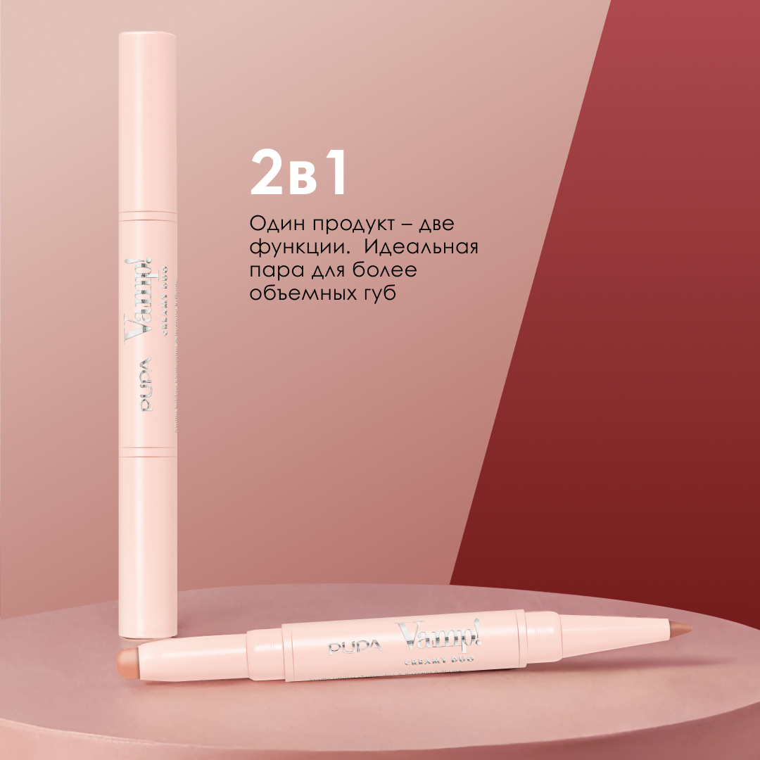 PUPA Набор для губ Vamp!Creamy Duo (Губная помада 0,8 г + Карандаш для губ 0,2 г), 007 1 921 ₽