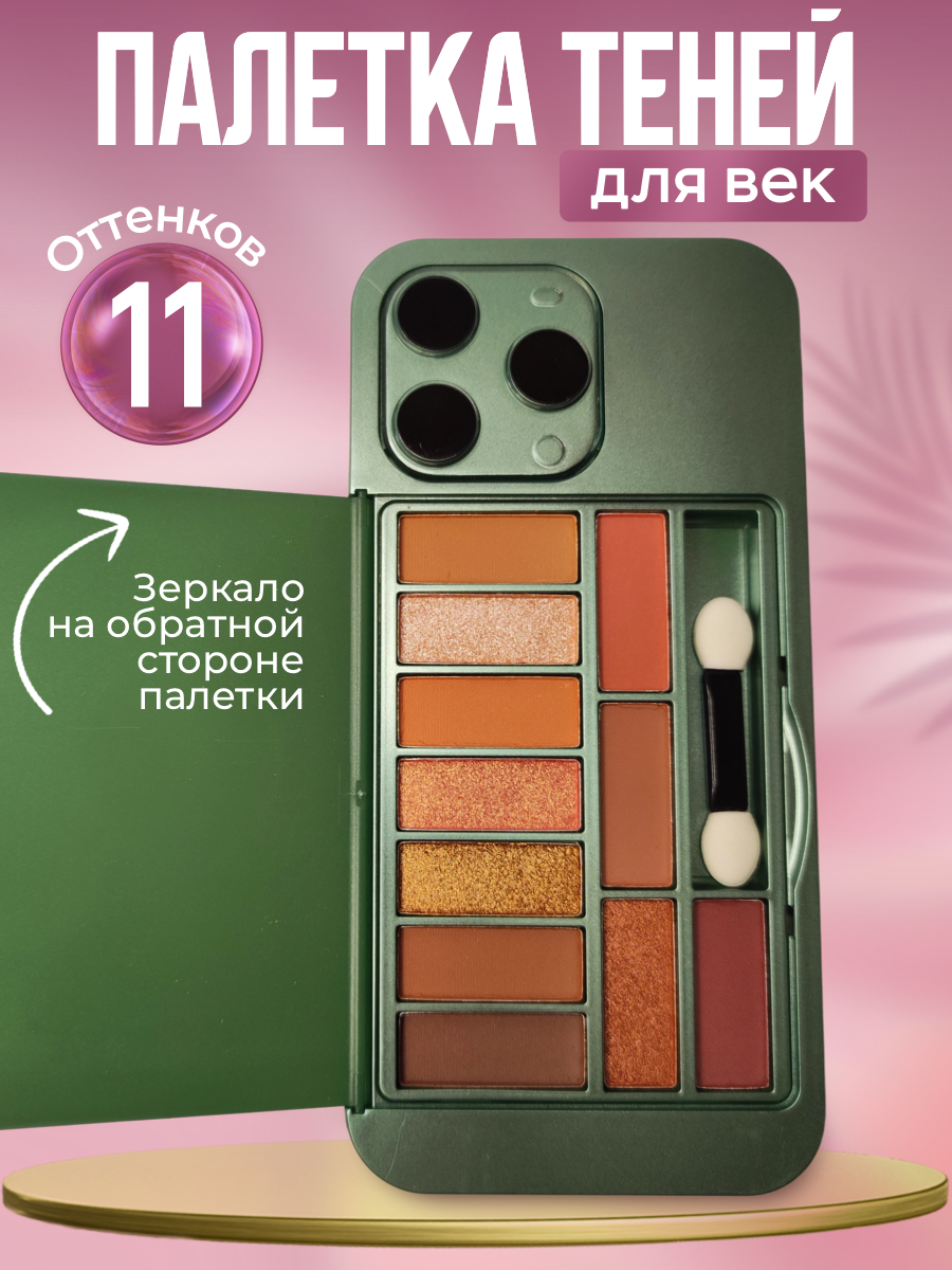 10 цен на Компактная оригинальная палетка теней в виде IPHONE 11 цветов с зеркалом, зелёный