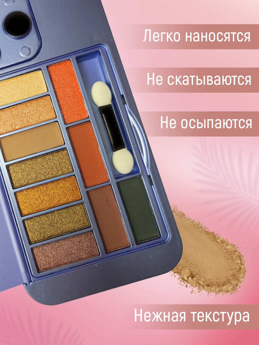Компактная оригинальная палетка теней в виде IPHONE 11 цветов с зеркалом, серебристый 850 ₽