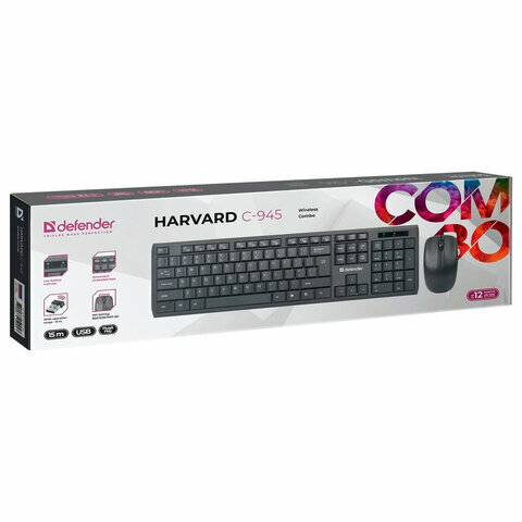 Defender Harvard C-945 Набор беспроводные клавиатура и мышь черные (2.4 ГГц, USB, 1200 dpi, 2 x AAA)