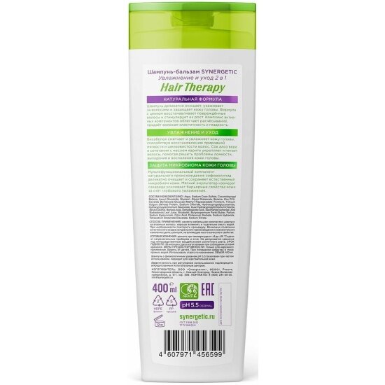 10 цен на Шампунь-бальзам для волос Synergetic Hair Therapy 2в1 Увлажнение и уход, 400 мл