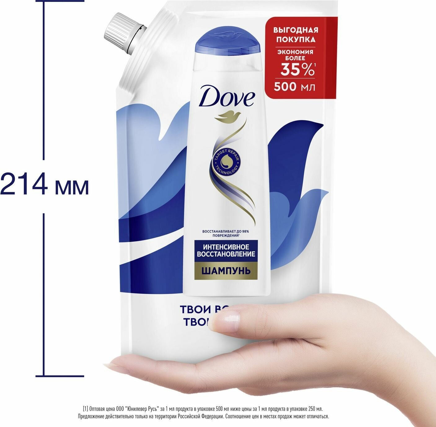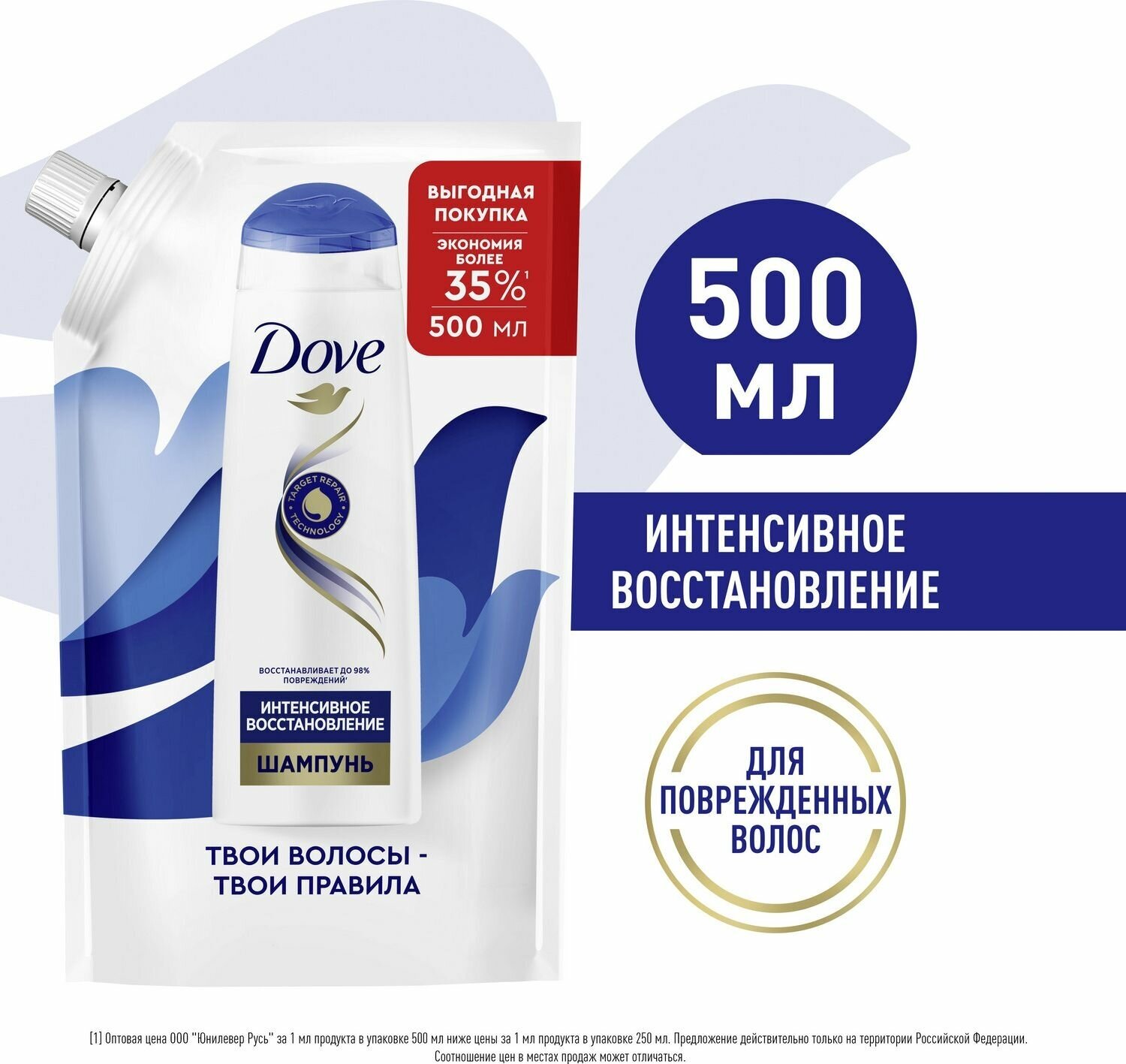 DOVE Шампунь для волос интенсивное восстановление, 500мл дой-пак, 2шт. 1 590 ₽