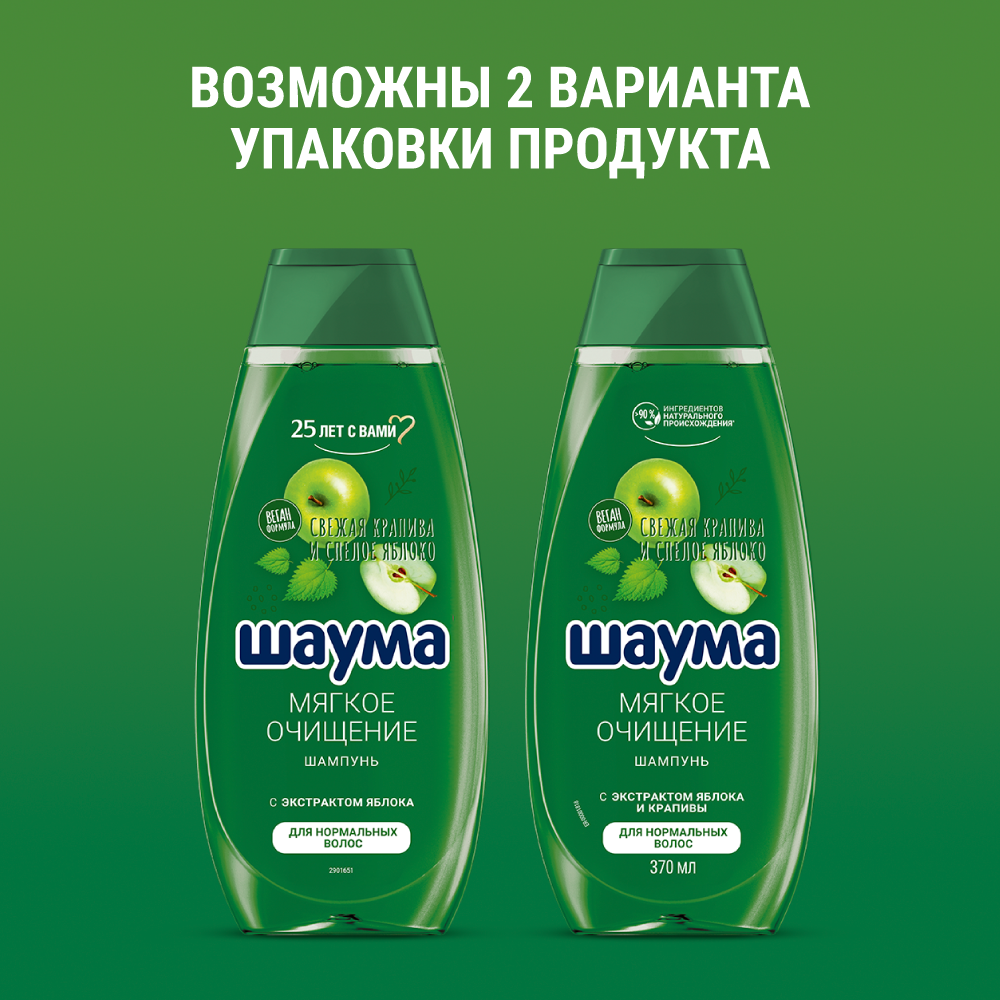 Шаума Шампунь для волос Мягкое Очищение Свежая крапива и Спелое яблоко, 370 мл - 3 шт 912 ₽