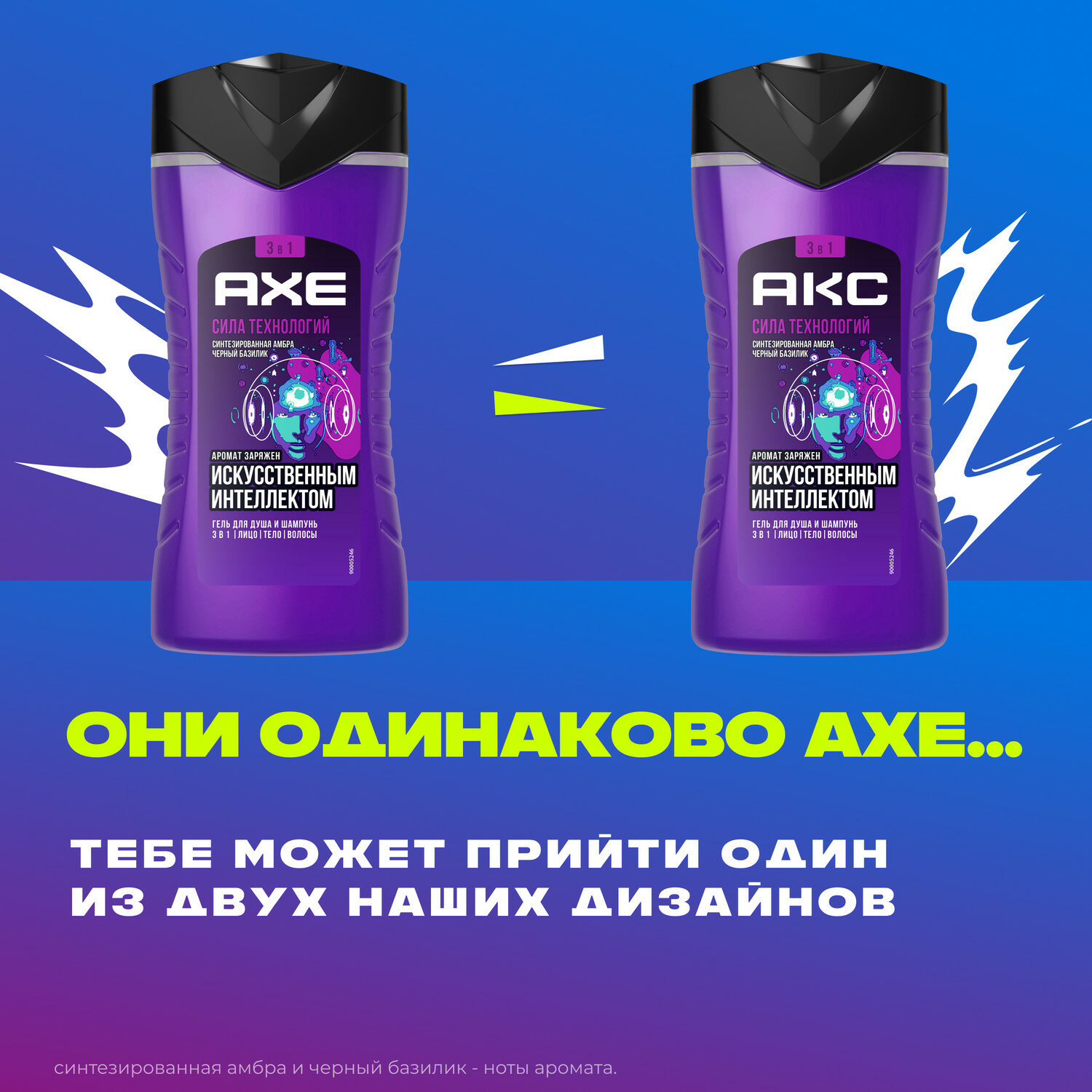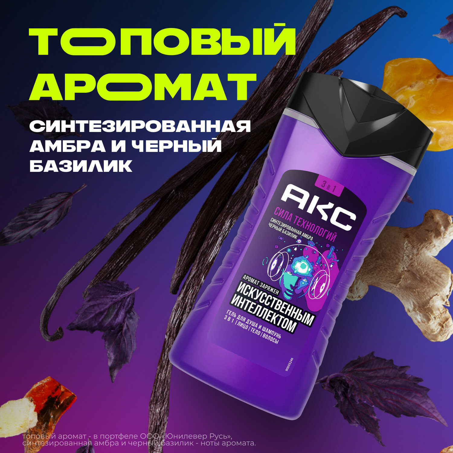 Шампунь для волос, гель для душа и умывания лица мужской парфюмированный Акс Сила технологий 3в1 250 мл информация: