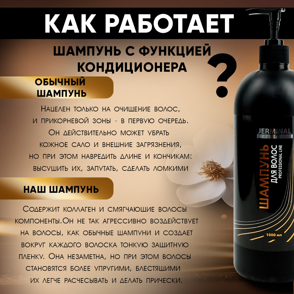 10 цен на Шампунь-кондиционер парфюмированный 2 в 1 JERMINAL -COSMETICS-, 1000мл, профессиональный для всех типов волос