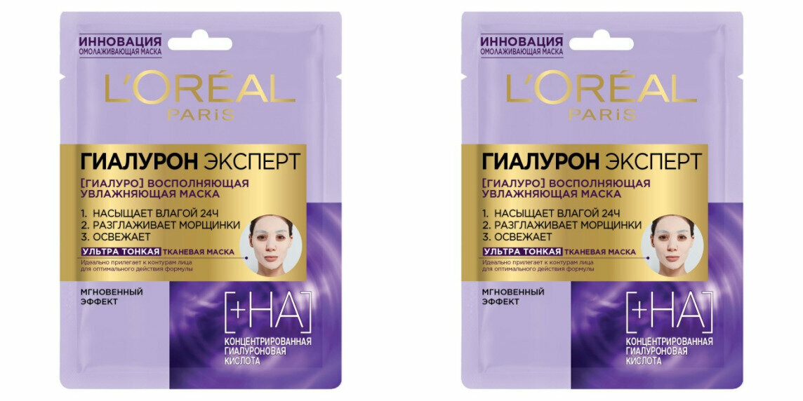 10 цен на Tканевая маска для лица Loreal, Paris Гиалурон Эксперт Увлажняющая, 2 шт