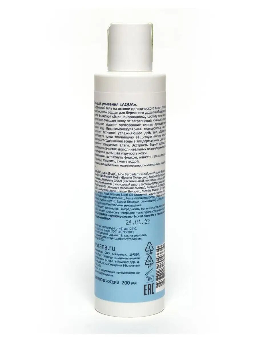 Aqua Гель для умывания увлажняющий/очищающий, 200 мл информация: