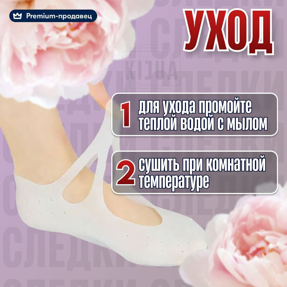 Носки от натоптышей и трещин для ног, следки силиконовые, подследники, силиконовые носки, стельки для обуви, универсальный размер информация: