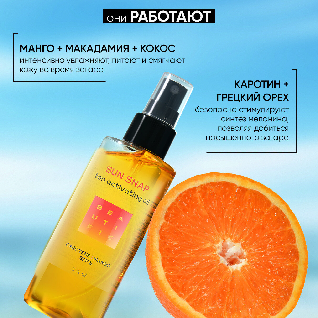 BEAUTIFIC Шелковое масло Sun Snap для интенсивного загара на солнце и в солярии SPF 5 , с маслом манго, 150 мл информация: