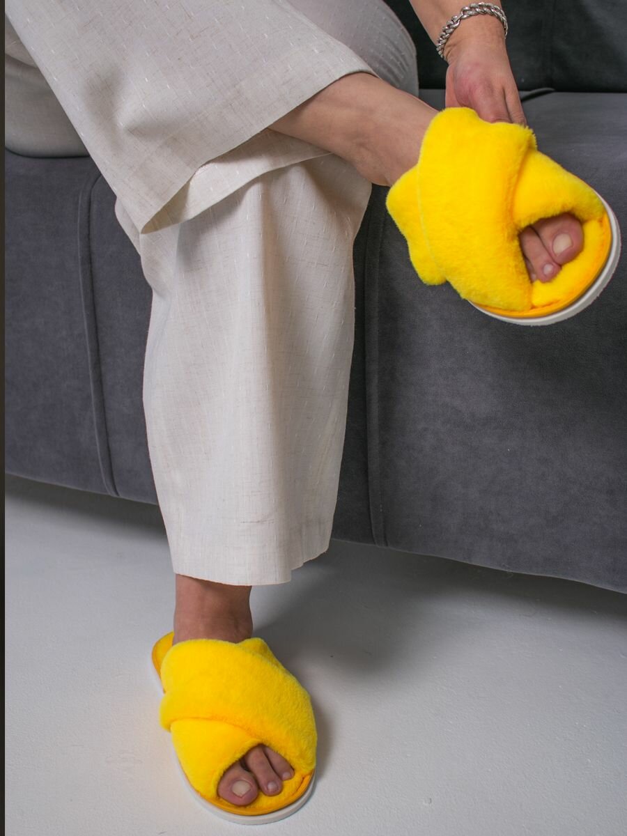 Тапочки домашние меховые женские с открытым носом ИвШуз, С-6ЖКК-МР, желтые 590 ₽