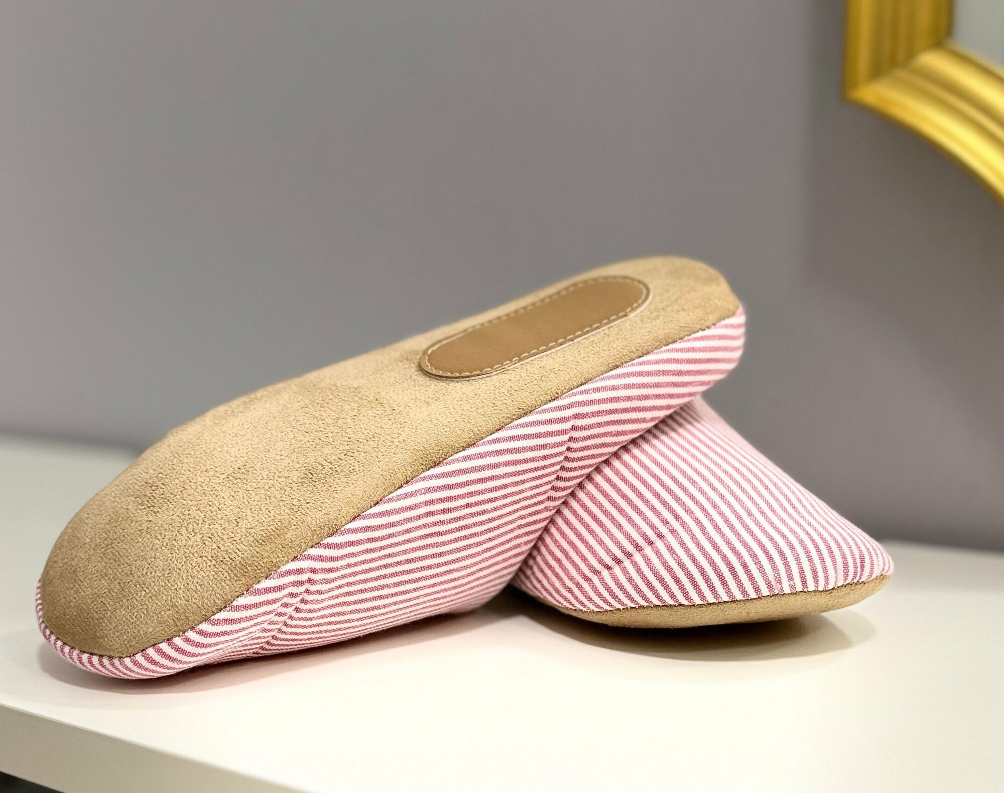 Отзывы на Тапочки Тапочки домашние в полоску для всей семьи закрытые в японском стиле, размер M, бело-розовый
