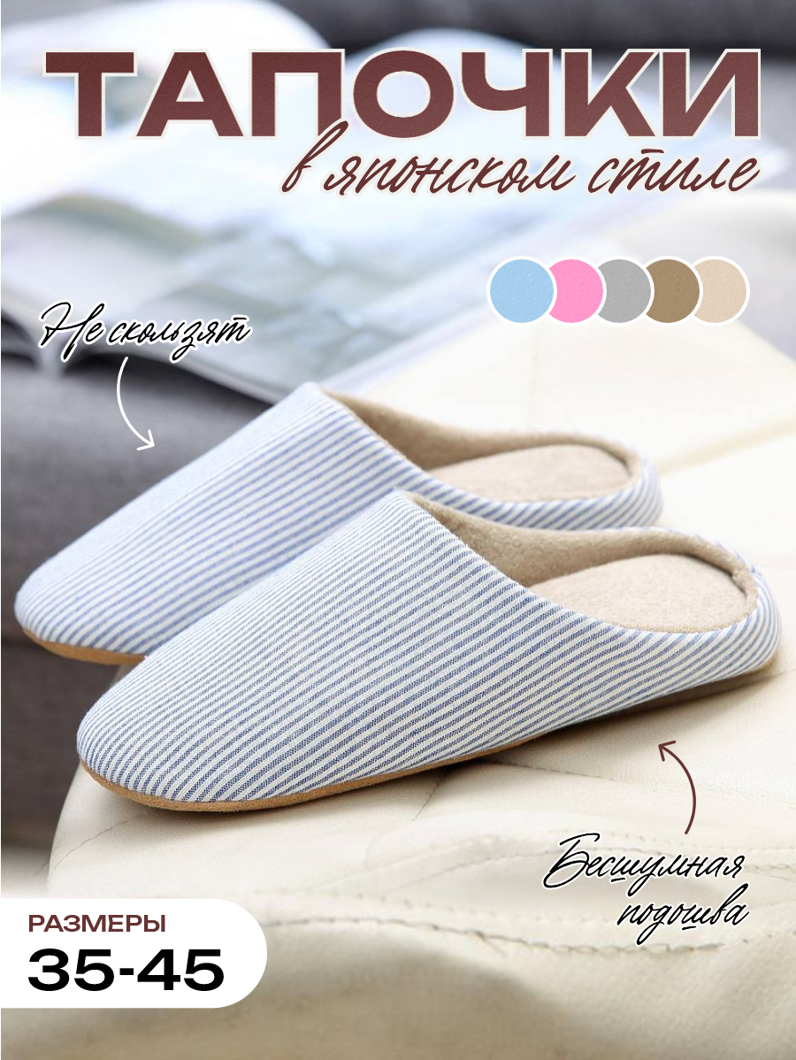 10 цен на Тапочки Тапочки домашние в полоску для всей семьи закрытые в японском стиле, размер S, бело-голубой