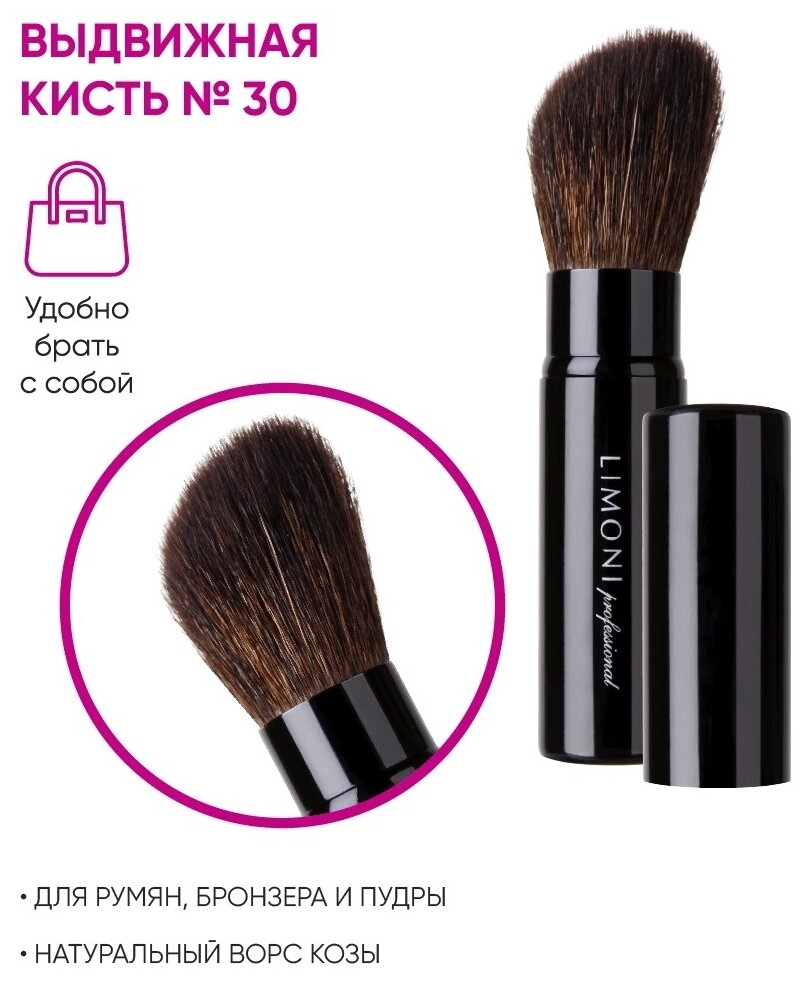 Компактная выдвижная кисть для пудры и румян №30 Professional LIMONI информация: