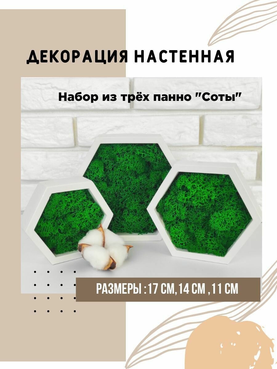 Отзывы на Набор панно 3 шт. из стабилизированного мха "Соты" / картина из мха / искусственные растения