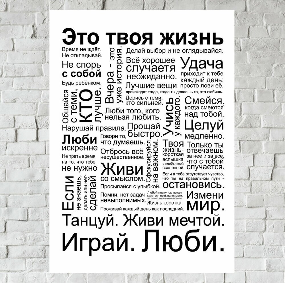 Отзывы на Постер плакат для интерьера "Постер - мотивация: Это твоя жизнь! Правила счастливой жизни" 30х40см (без рамок)