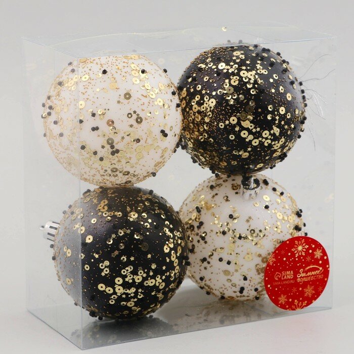4 шт. Ёлочные игрушки, шары новогодние , пластик, набор d-8 см, 4 шт "Мюриель" блеск, чёрный белый 3 344 ₽
