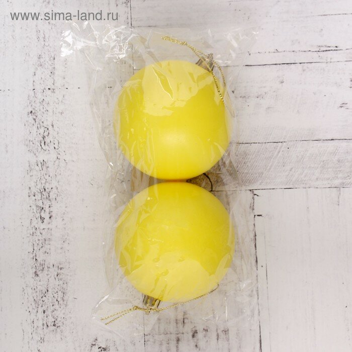 Ёлочные игрушки, шары новогодние , пластик, набор d-8 см, 2 шт "Матовый" жёлтый информация: