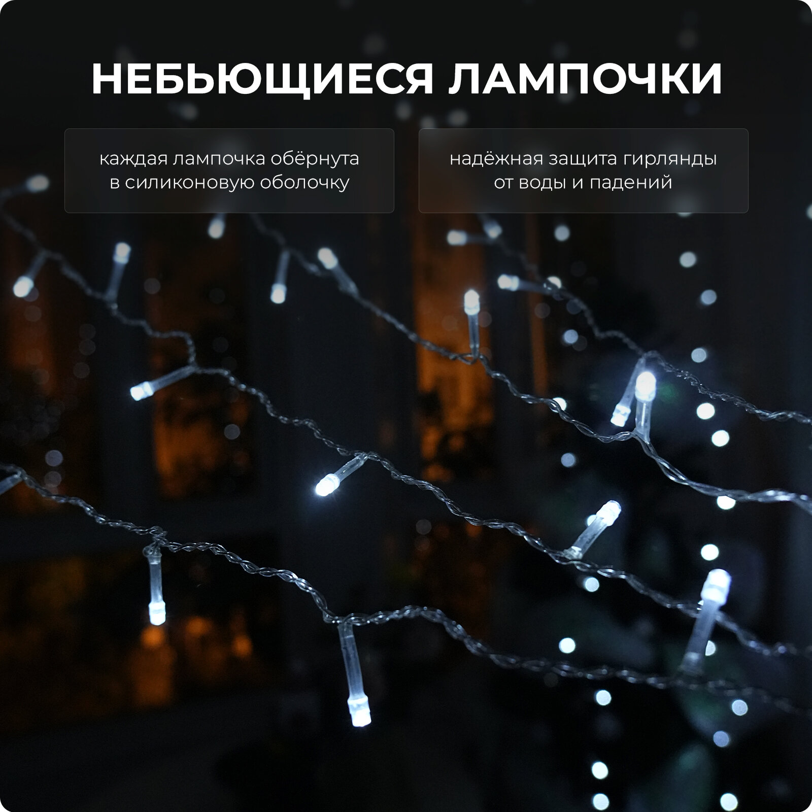 Гирлянда уличная Бахрома 50м / Гирлянда светодиодная, питание от сети 220В, черный провод, белый свет