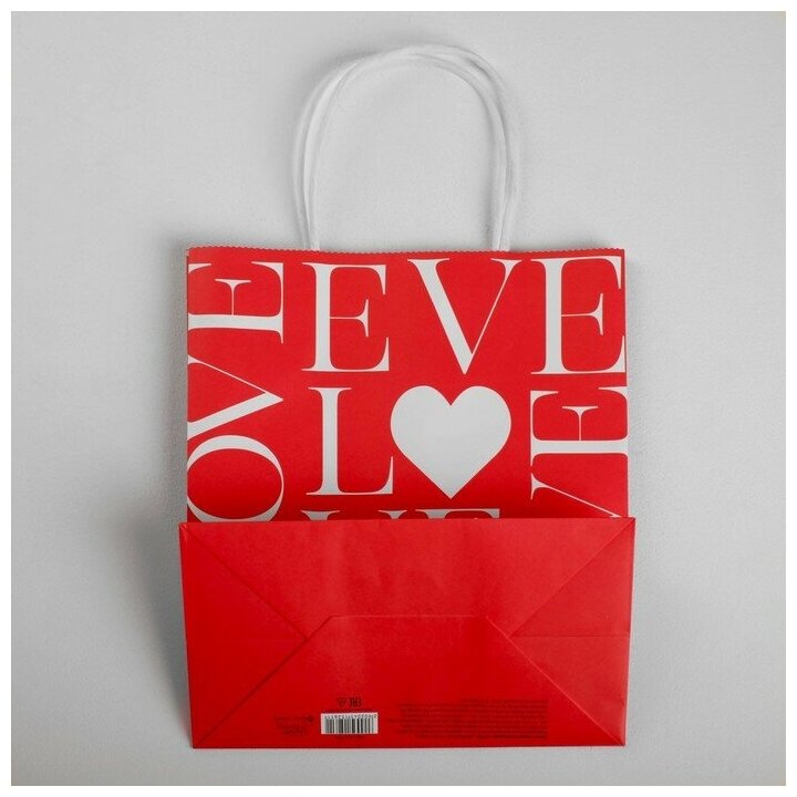 10 цен на Пакет подарочный "LOVE", 25 х 22 х 12 см, красный, крафт, для упаковки подарка