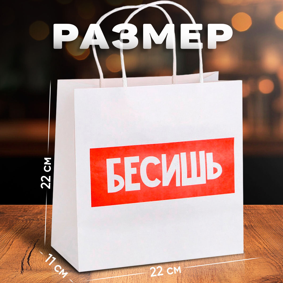 Отзывы на Пакет подарочный с приколом «Бесишь», 22 × 22 × 11 см, крафтовый