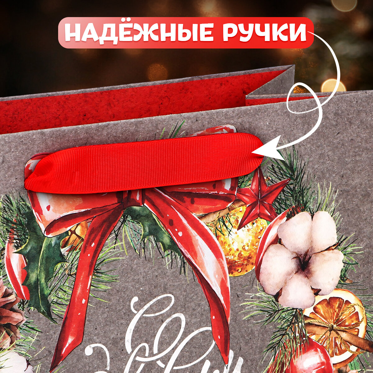 Подарочный пакет «Новогодний венок», 22 х 22 х 11 см, для упаковки подарка на Новый год 161 ₽