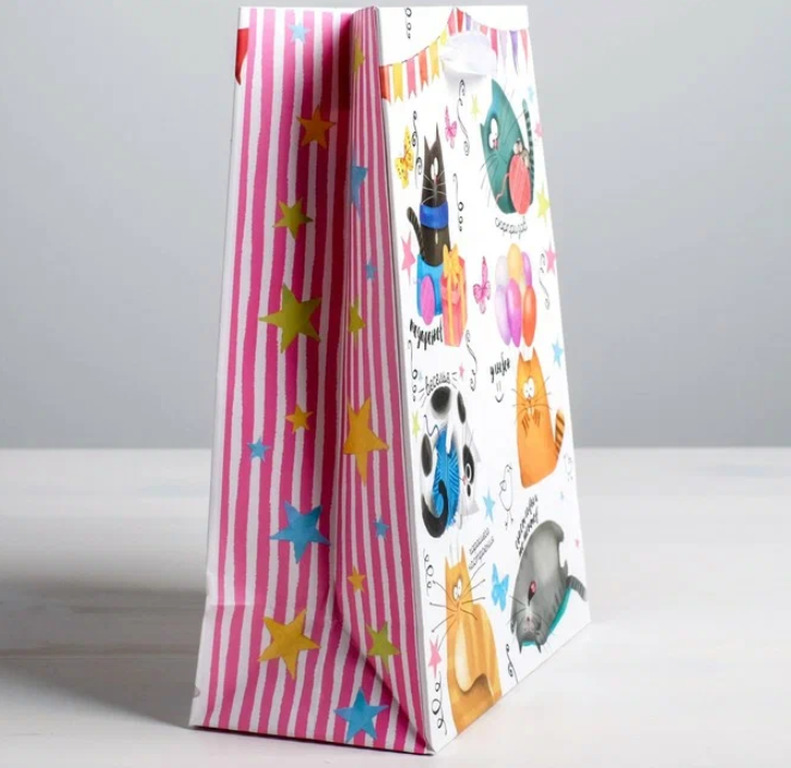 Отзывы на Пакет подарочный ламинированный «Забавные коты», 23 × 27 × 8 см, белый, для упаковки подарка