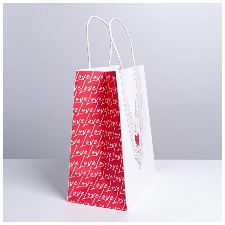 Пакет подарочный крафтовый, упаковка, «Love», 12 х 21 х 9 см 211 ₽