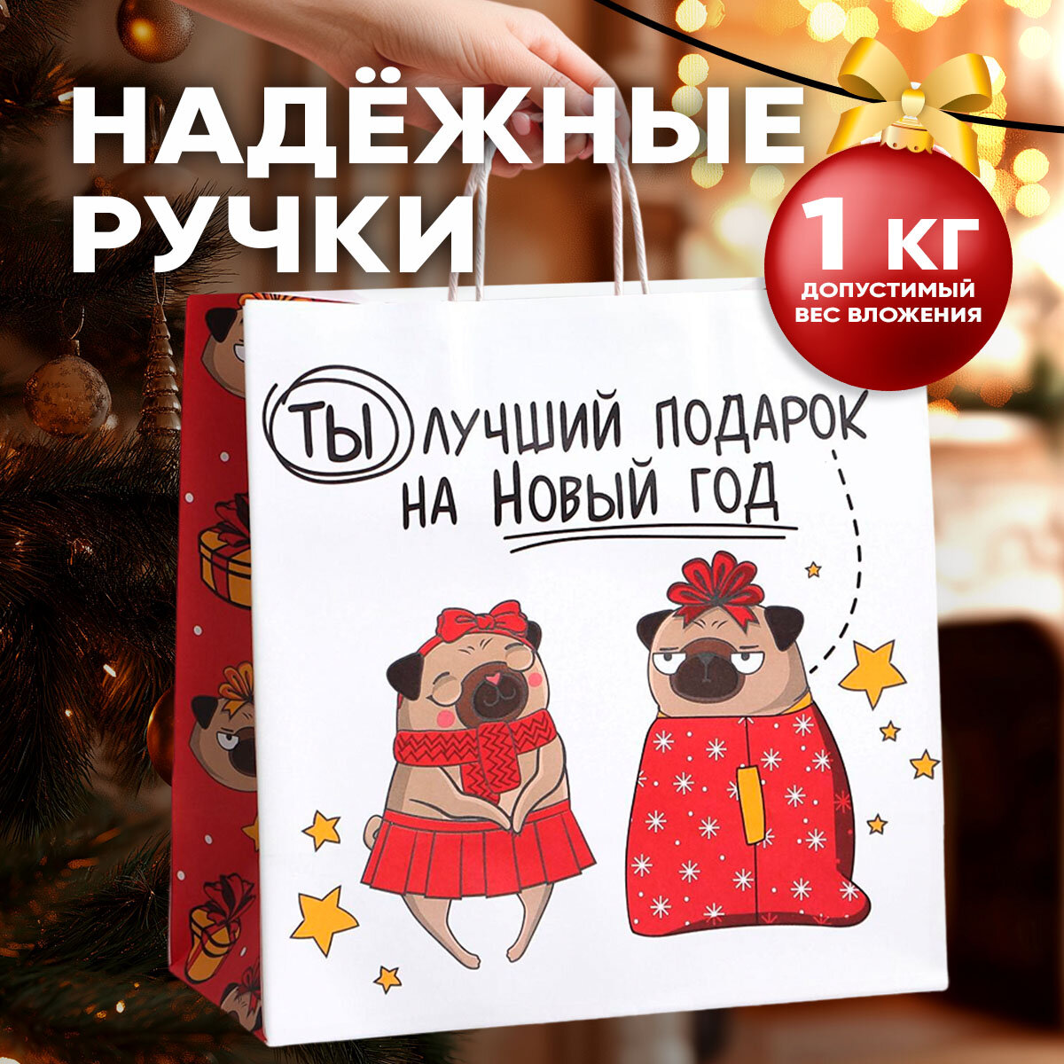 Подарочный пакет «Ты - лучший подарок», 22 х 22 х 11 см, крафт, для упаковки подарка на Новый год информация: