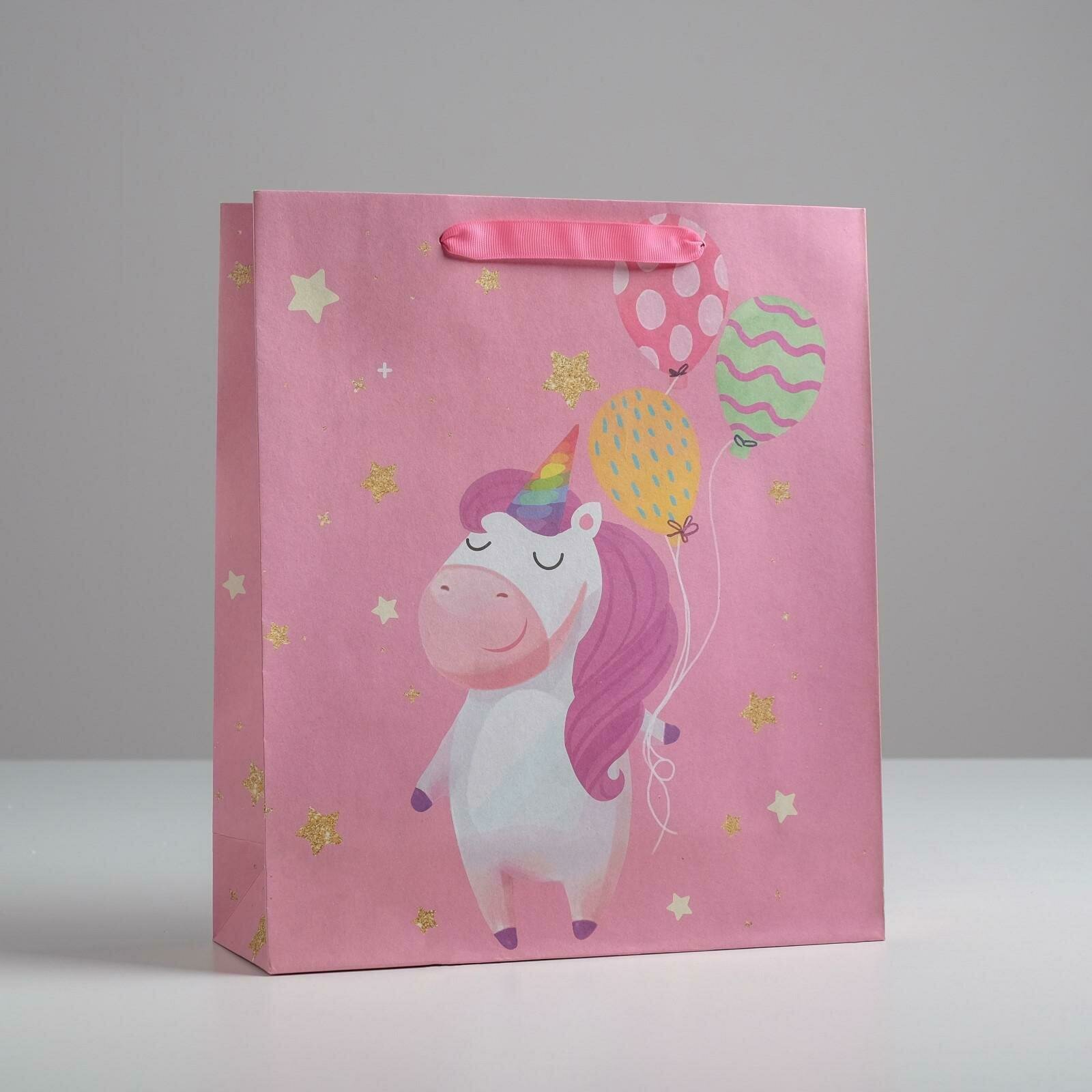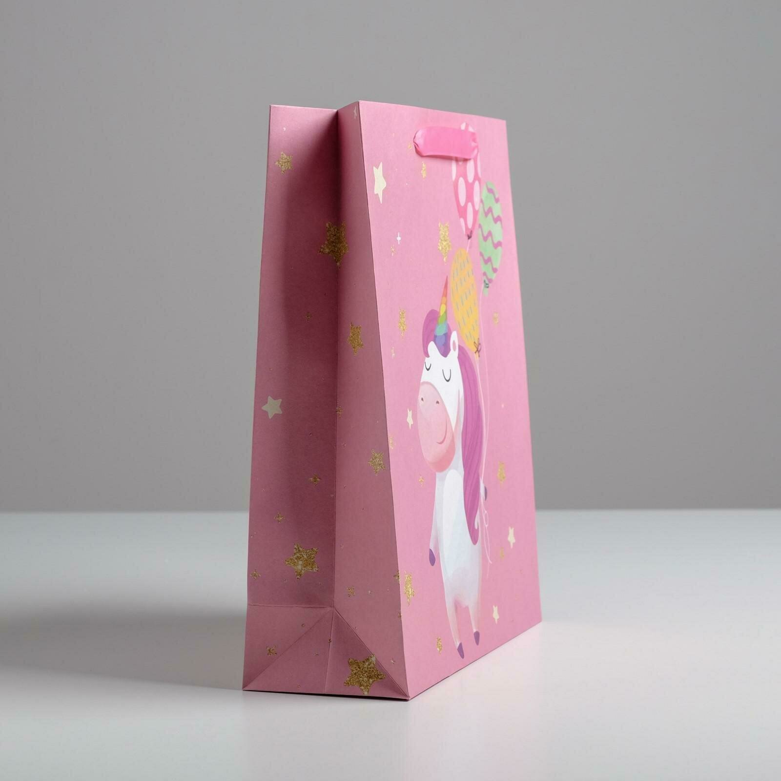 Дарите Счастье Пакет крафтовый вертикальный "Единорожек", M 26 х 30 х 9 см информация: