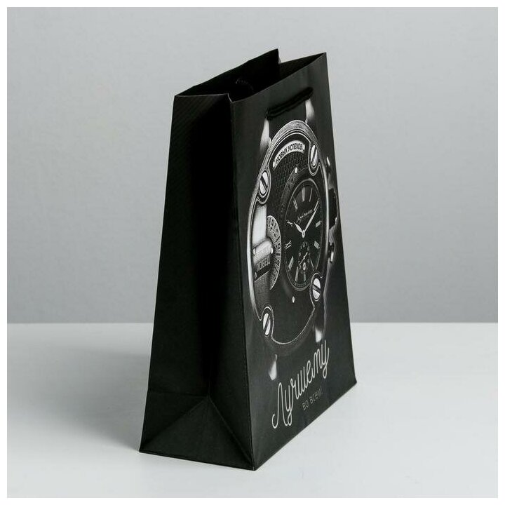 Подарочный пакет, черный, ламинированный вертикальный, бумага, «Лучший», MS 18 × 23 × 10 см, для подарка. 182 ₽